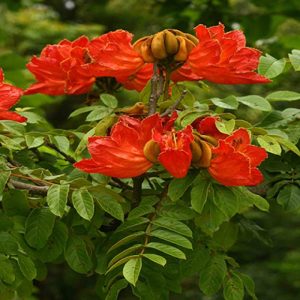 Spathodea is a genus in the plant family Bignoniaceae. The single species it contains, Spathodea campanulata, is commonly known as the African tulip tree. The tree grows between 7–25 m (23–82 ft) tall and is native to tropical dry forests of Africa. It has been nominated as among 100 of the “World’s Worst” invaders.